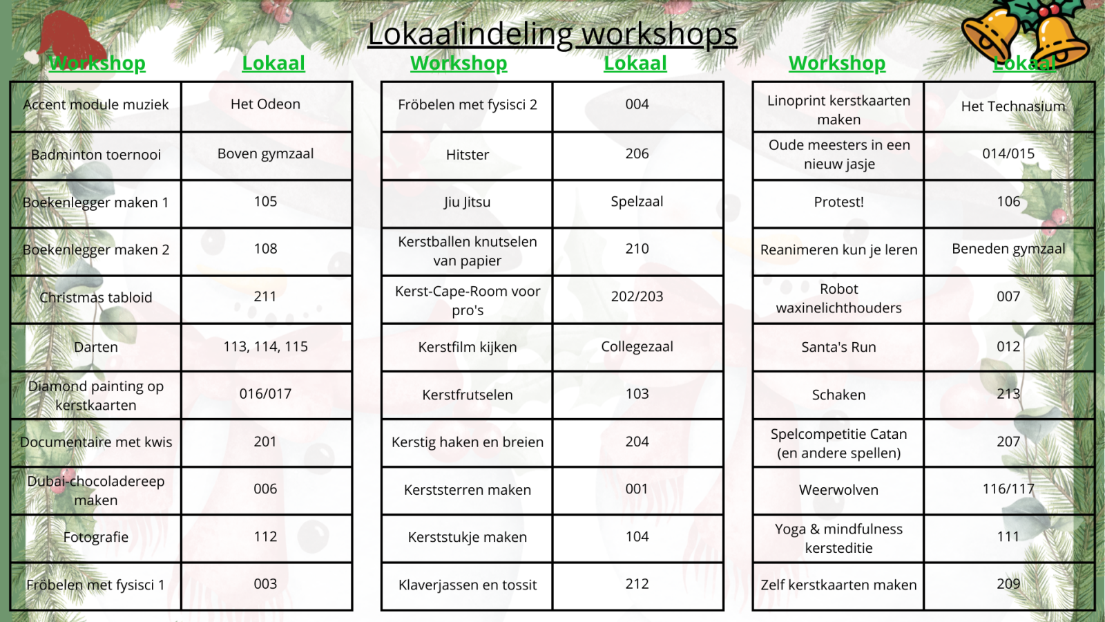 's Avonds heten wij alle leerlingen en hun ouders welkom op de kerstmarkt. Op deze markt zullen spullen verkocht worden die de leerlingen hebben gemaakt tijdens de workshops van het kerstproject. Denk hierbij aan prachtige kerststukjes, schitterende versieringen voor in de kerstboom maar ook overhéérlijke zelfgemaakte bonbons. Het is natuurlijk erg leuk om te zien wat de leerlingen gemaakt hebben en nog beter: Alle opbrengsten gaan naar het goede doel!